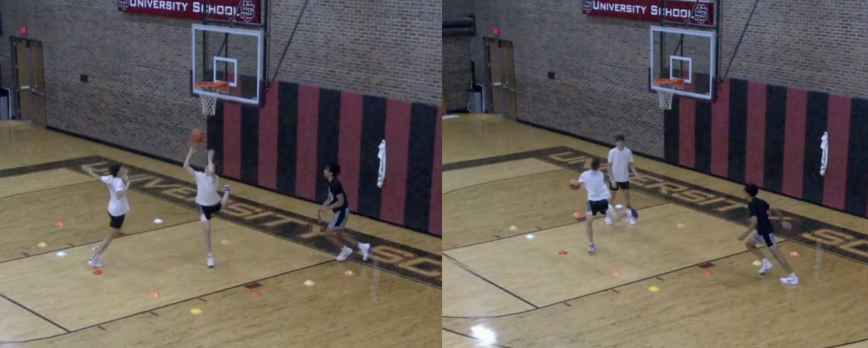 We modify mirror drill in many ways—changing where the defender is located in relation to his teammate, the primary movements performed (dynamic movements, jumping, or sprinting), the body positioning (on the ground or standing), the directional plane or type of landing players end their movements, and what’s done in between these movements (pulsing or walking). The goal is for it to look different every day. The stumbles, pauses, and awkward movements aren’t flaws in the warmup—they’re proof that it is doing its job. They show athletes actively problem-solving in real time, just as they’ll need to in practice and games.