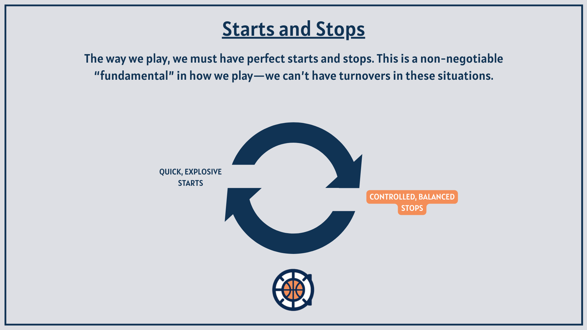 - In our first year running this offense, it took us a while before players started making plays off of two feet. Stopping, pivoting, and passing to the fill is not something players have been taught. Yet, it’s a great indicator of our decision-making (whether we are driving under control—you can’t pivot if you aren’t under control, and how well we are diversifying our passes out of the paint)