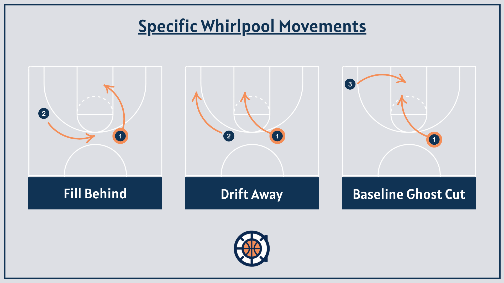 - Every off-ball player on the court will move in the direction of the drive with the exception of the player in the corner (the corner will hold and hover)—we call this the whirlpool